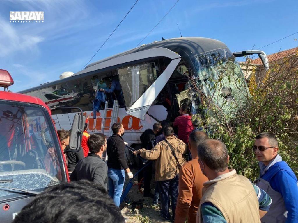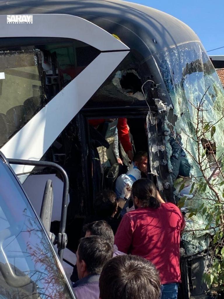 وذكرت مصادر محلية أن بعد الاصطدام تمكنت حافلة الركاب، التي كانت تضم 24 شخصا، من التوقف عن طريق اصطدامها بجدار منزل على جانب الطريق.
