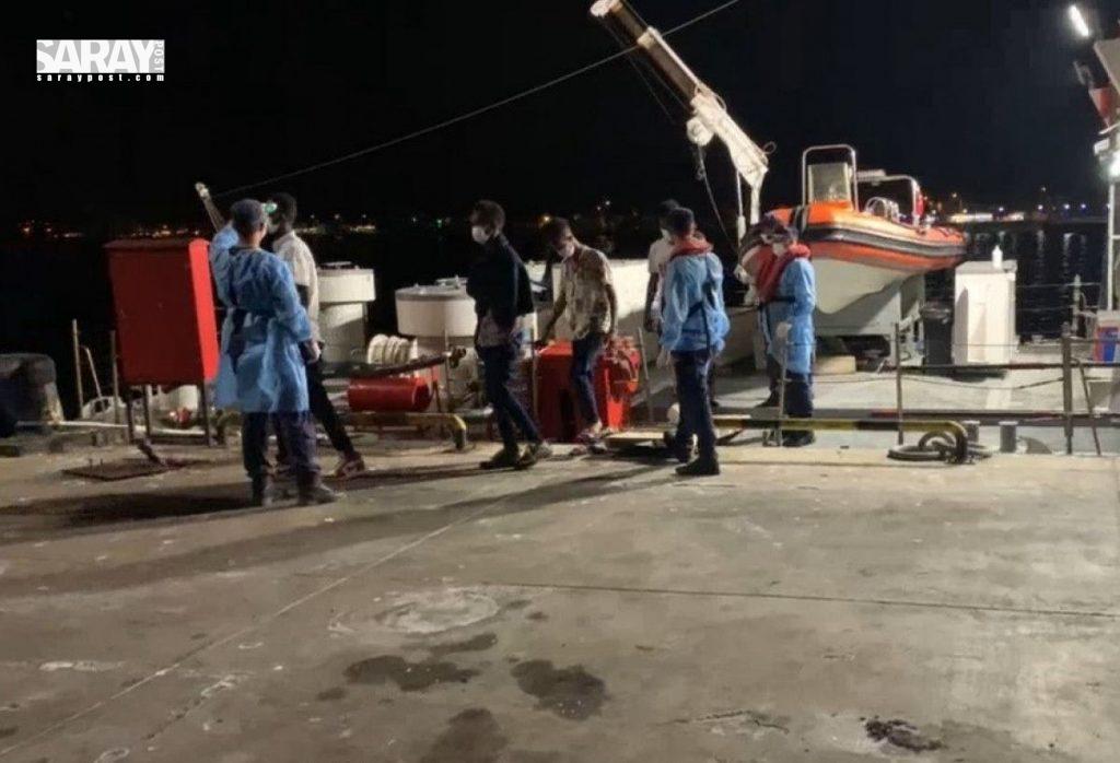 أنقذت قيادة خفر السواحل التركي 34 مهاجرا غير شرعي في قارب مطاطي، تم جره بسبب عطل في المحرك، قبالة سواحل ديكيلي في إزمير.