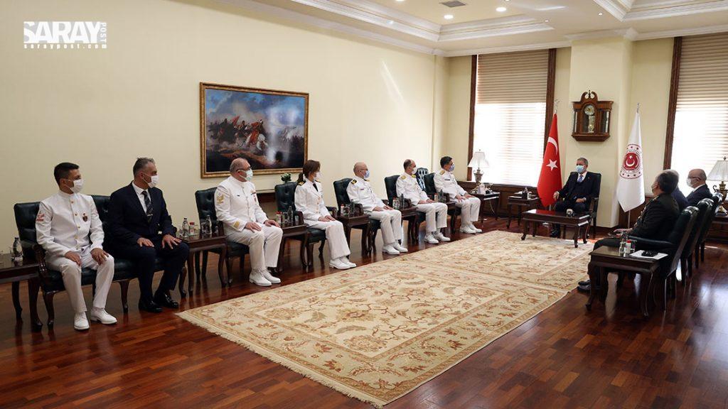 كما التقى أكار الاثنين قائد القوات البحرية اللواء عدنان اوزبال، وأفراد قيادة القوات البحرية المرافقين له بوزارة الدفاع الوطني.